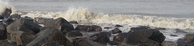 De zee lijkt zo kalm en de golven worden voor een groot deel tegen